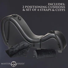 Want your very own sex dungeon at home but don't have the floor room to spare? This kinky sex chaise longue breaks down into two pieces so you can store it when not in use! Tuck it away in a room, closet, or storage. Break it down to easily transport it from one place to the next! Never stress about fitting that couch through the tight hallway, stairwell or door again! Just unhook the metal brackets and take it a piece at a time! Built out of durable wood and metal, it's covered with Vegan leather. This faux leather is easy to clean and is smooth and seamless. The couch is comfortable and ergonomically built so you can explore more positions than ever before! Included with the couch are two Love Pillows that act as support aids for your head or chest at the top and allow comfortable sitting or kneeling when placed in the curve of the couch. Restrain your lover to the couch with the soft fleece wrist and ankle cuffs! They each connect via nylon straps to the base of the couch and are easy to adjust and remove. Assembly is easy; simply follow the directions included with the couch. Wash off the couch after a sexy scene with warm water and mild soap. Use a soft cloth to wipe it clean.