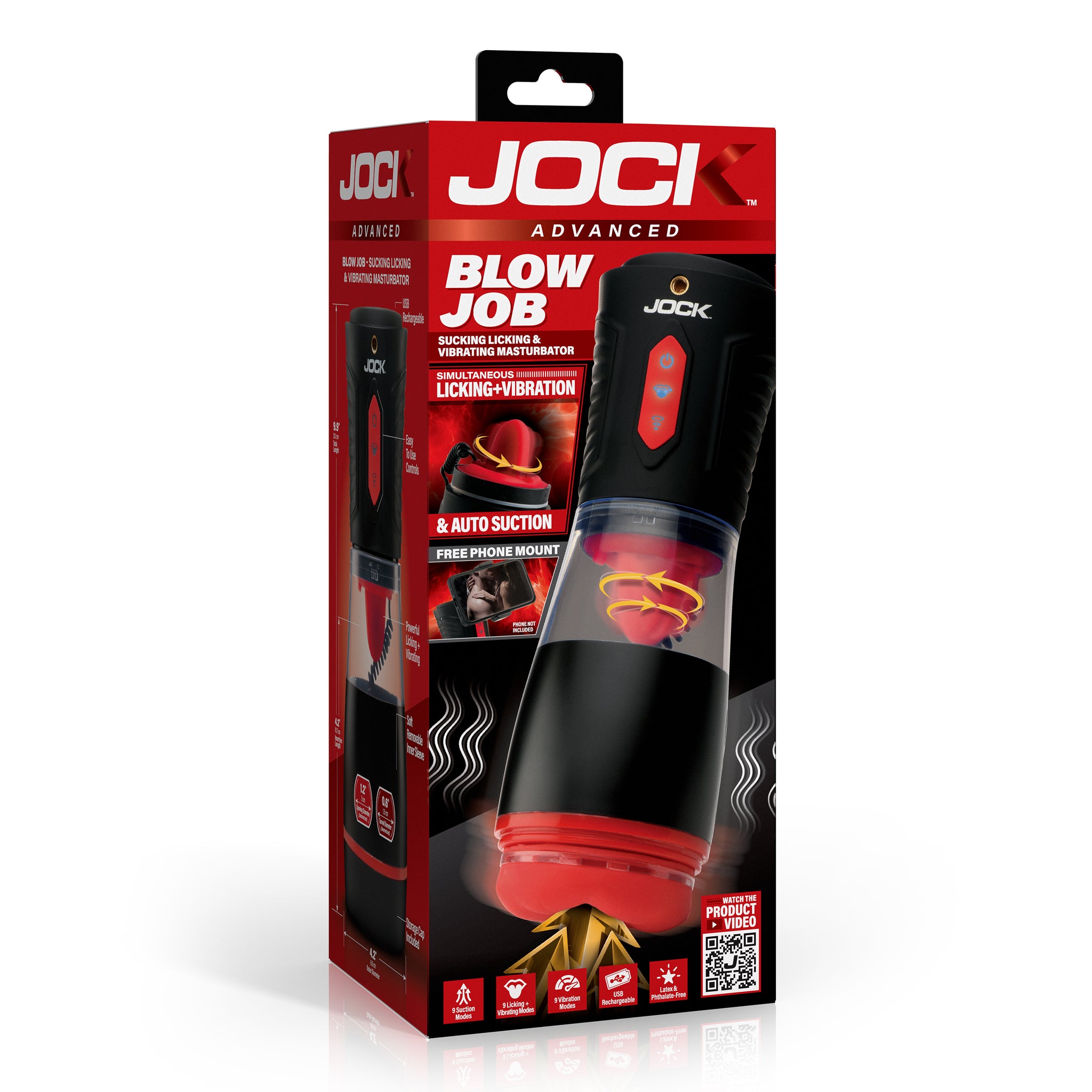 Revolutionize your personal pleasure time with this Advanced Blow Job Sucking, Licking, & Vibrating Masturbator. Experience vibrating and licking tongue modes that provide new dimensions of stimulation. The 9 adjustable suction modes let you personalize each session, while the soft, textured silicone tunnel offers an ultra-stimulating experience with nubs that gently grip and massage your shaft with each stroke. For added excitement, use the built-in phone mount to enjoy POV visuals during your experience. Post-play cleanup is hassle-free with a detachable sleeve and cylinder. Simply wash with warm water and soap and let it dry before reinserting. Recharge using the included USB cable and be ready whenever inspiration strikes. Your satisfaction has never been this versatile or easy to achieve.