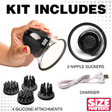 For those who want to expand the potential for arousal from nipple stimulation, or for those who love constant attention on their nipples and areolas, these rotating silicone nipple suckers are for you! Each of the cups holds on via suction so they are hands-free! Once on, press the button and enjoy the premium, phthalate-free, silky smooth silicone as it rotates across and around your nipples! Comes with a set of two different attachments. One of the attachments has longer, thin nubs that go around the nipple and stimulate the sides of the nipple and the areola. The other set has shorter nubs that stimulate the top of the nipple directly. Rated as IPX5 waterproof, it is splashproof and can handle low pressure jets. Do not submerge under water. Use only with water-based lubricants. To recharge, use the USB charging cable provided.