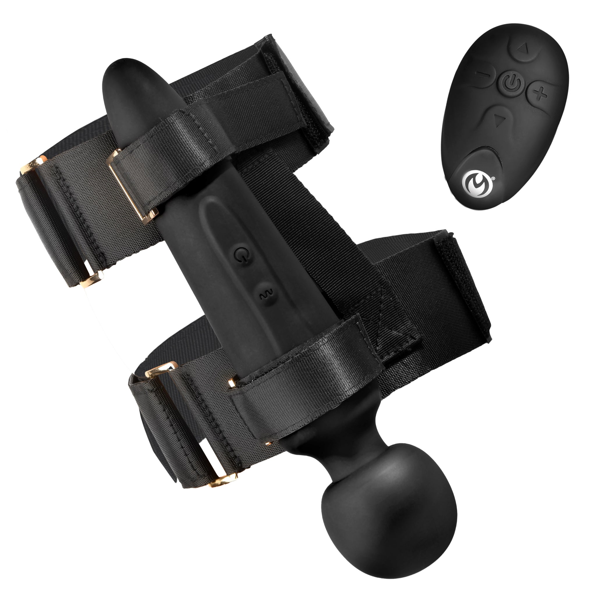 Maximize pleasure effortlessly and control when your partner releases with this innovative thigh-mounted vibrating wand. Designed for optimal comfort and performance, it boasts 3 adjustable speeds and 7 thrilling vibration settings to suit your desires. Encased in ultra-soft, body-safe silicone, this wand delivers luxury at its finest. The included thigh strap features adjustable velcro closures for a secure, comfortable fit, keeping the wand steady during use. Thanks to the wireless remote’s 26-foot range, enjoy remote operation with ease and versatility. Both the vibrator and remote are rechargeable for lasting convenience and satisfaction. Control their pleasure; it's in your hands.
