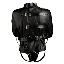 Strap down your partner and be in total control! The straight jacket keeps your partner restrained with belt style straps which are strategically located- one at the neck, three that run across the back and two around the thighs. Jacket also has three D-rings, one at the neck and one on each sleeve, for additional bondage positions. On top of all the great security, we have made the elbows more durable by applying extra leather to help prevent wear and tear.